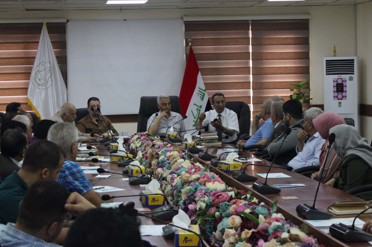 باللجان الامتحانية و رؤساء الاقسام والمقررين ومجموعة من التدريسيين لبحث عملية تنسيق سير الامتحانات النهائية لسنة 2017-2018 بشكل نموذجي وسلس وفق تعليمات الوزارة وتوجيهاتها