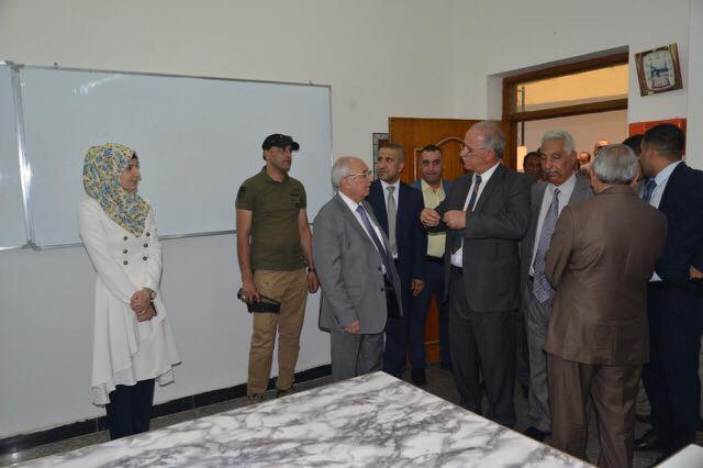 واطلع وزير التعليم العالي والبحث العلمي الدكتور عبد الرزاق العيسى، على القاعات الدراسية والمختبرات العلمية والمكتبة المركزية في الكلية .