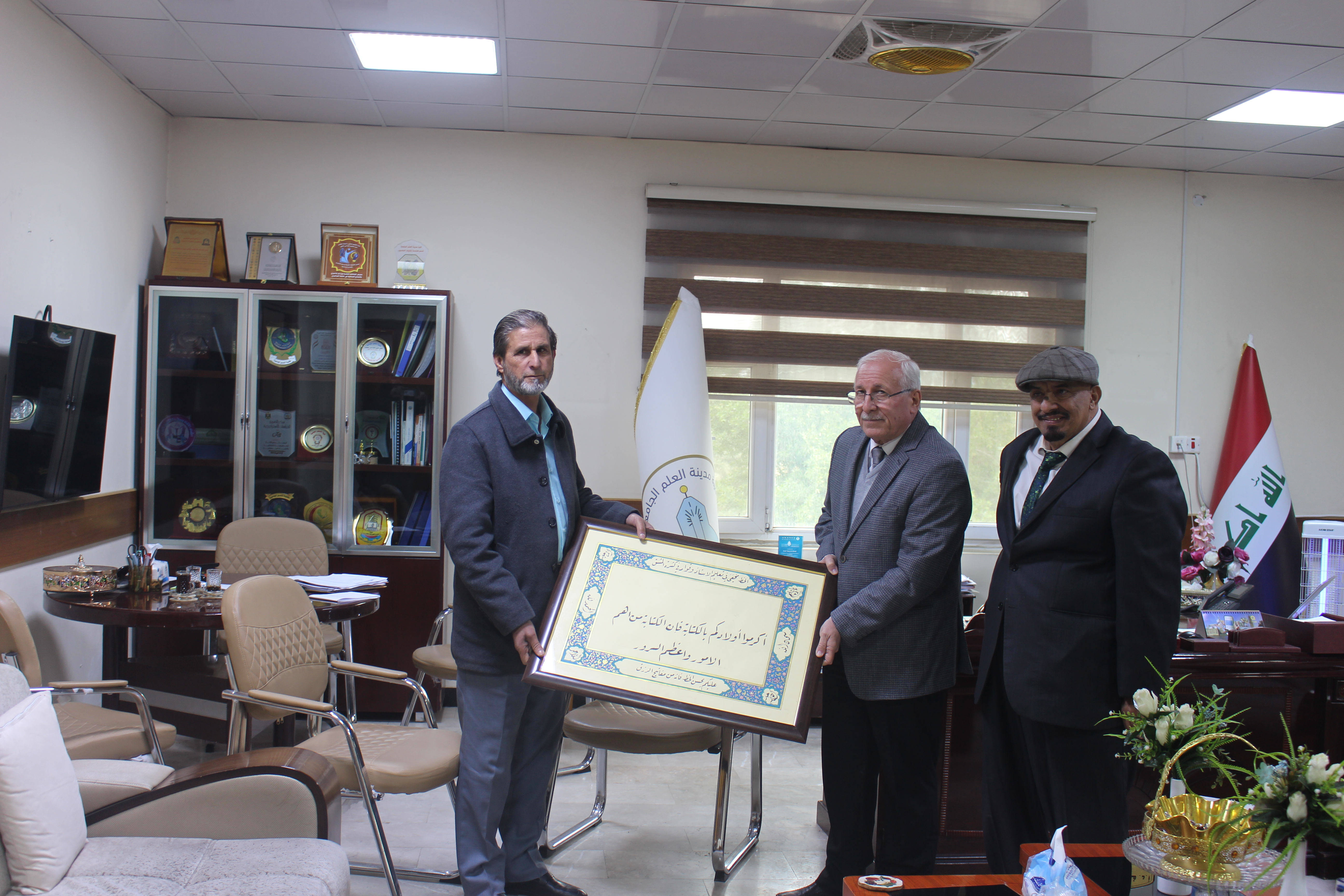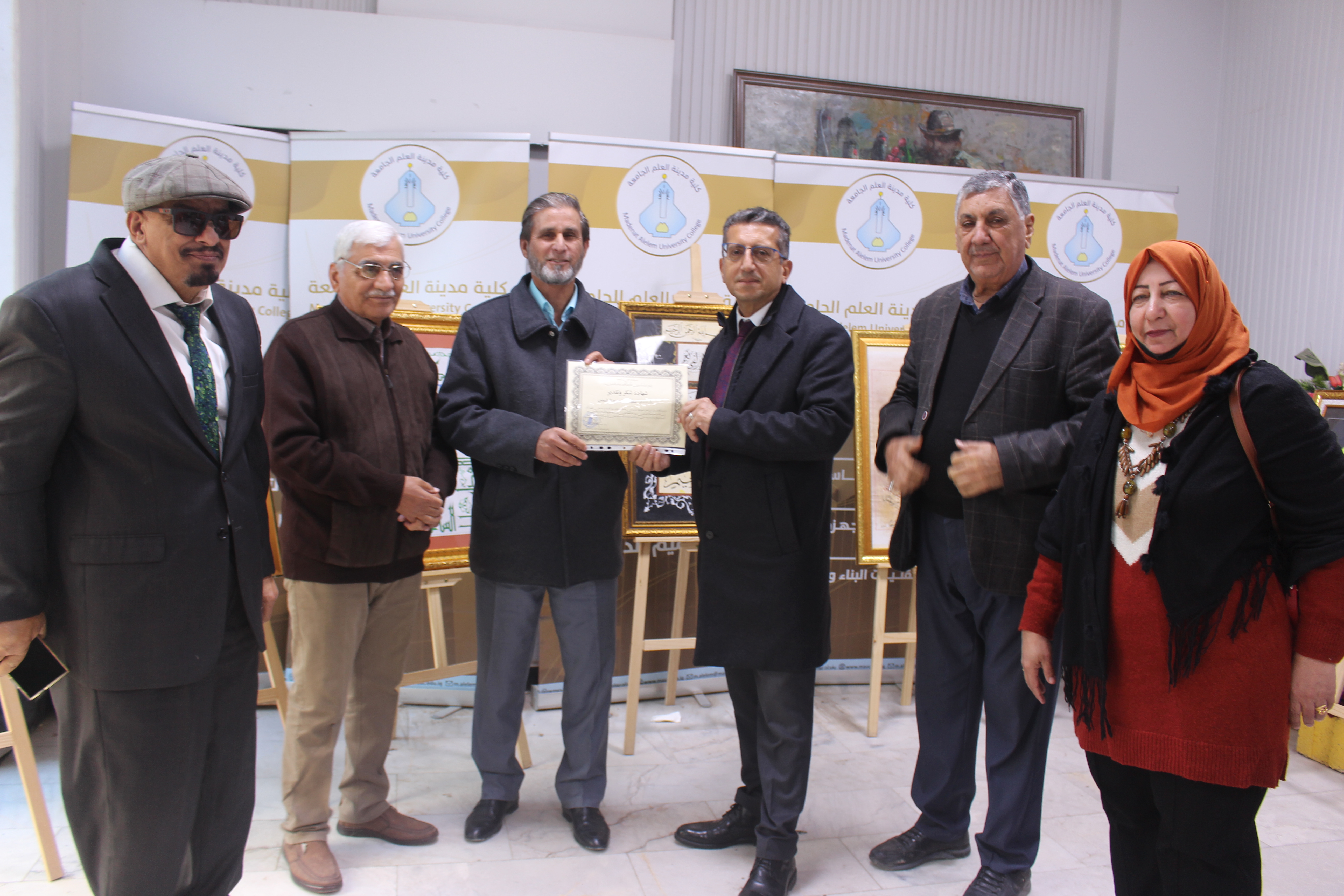 وعلى هامش المعرض قدم الدكتور عطية الدليمي لوحة خطية لمقولة عربية بخط يديه شكرا وامتنانا الى السيد عميد الكلية الاستاذ الدكتور فارس عبدالكريم