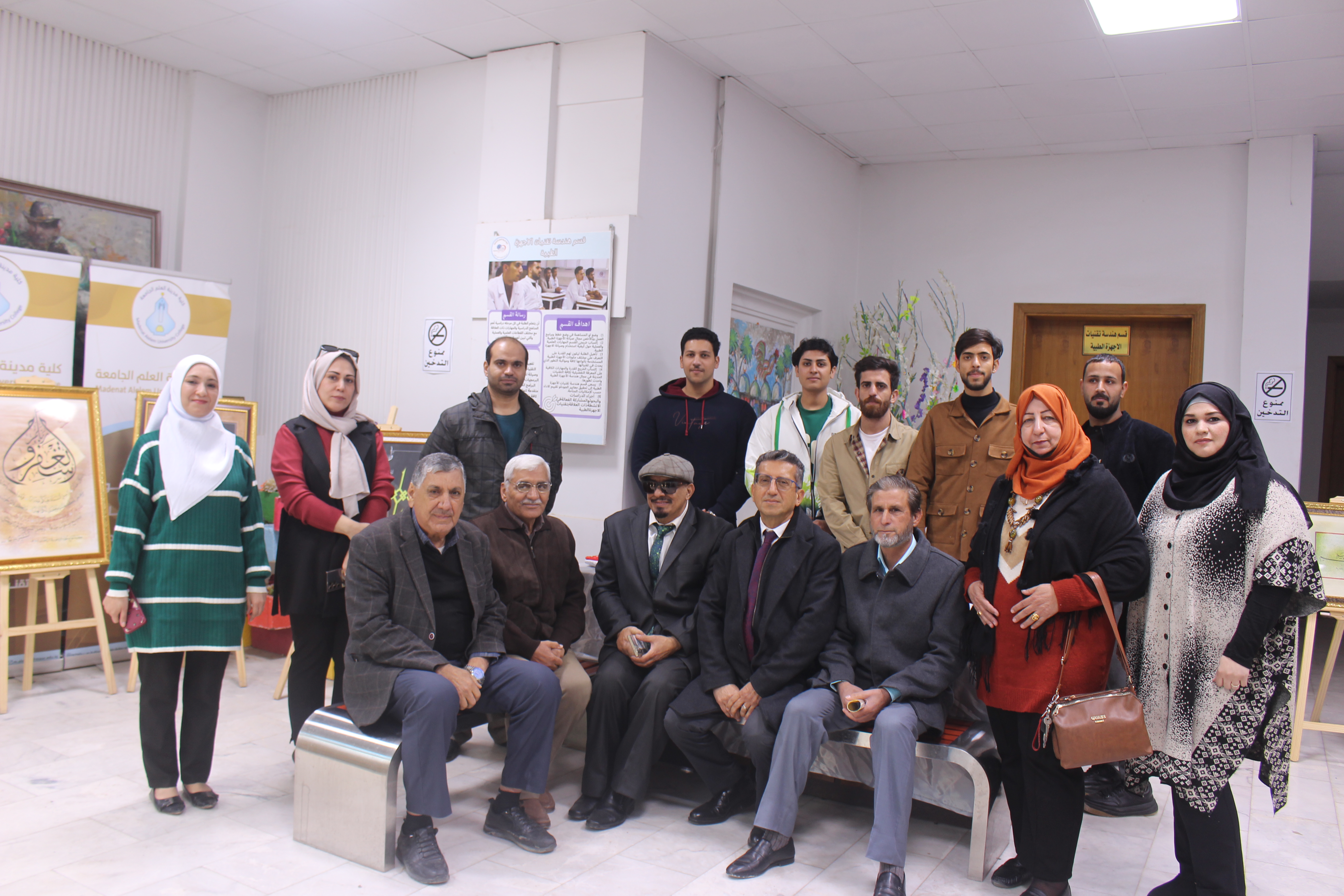 افتتح المعرض السيد معاون العميد للشؤون العلمية/وكالة الدكتور ثامر الحلفي وبحضور رئيس قسم التصميم الداخلي الدكتور عبدالجبار العتابي والكادر التدريسي للقسم ووحدة شؤون المرأة
