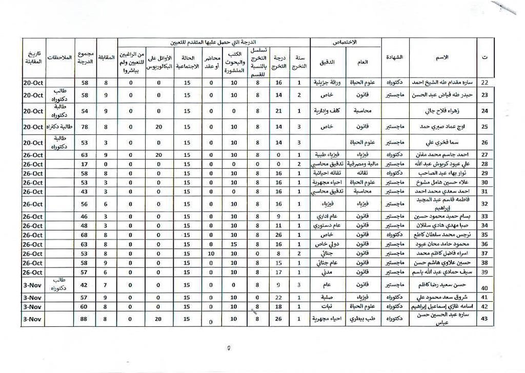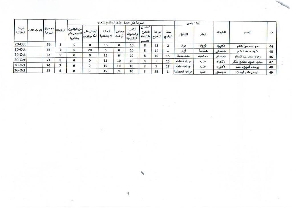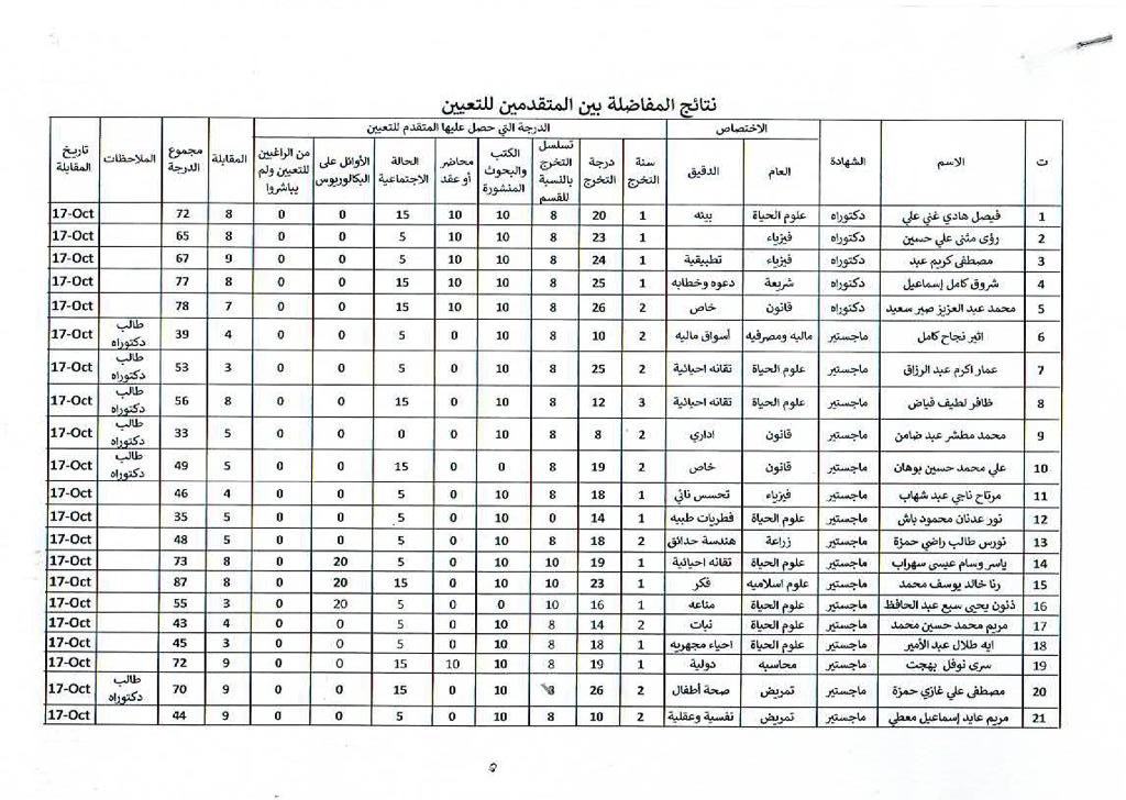 نتائج المفاضلة للمتقدمين على التعيين في كلية مدينة العلم الجامعة