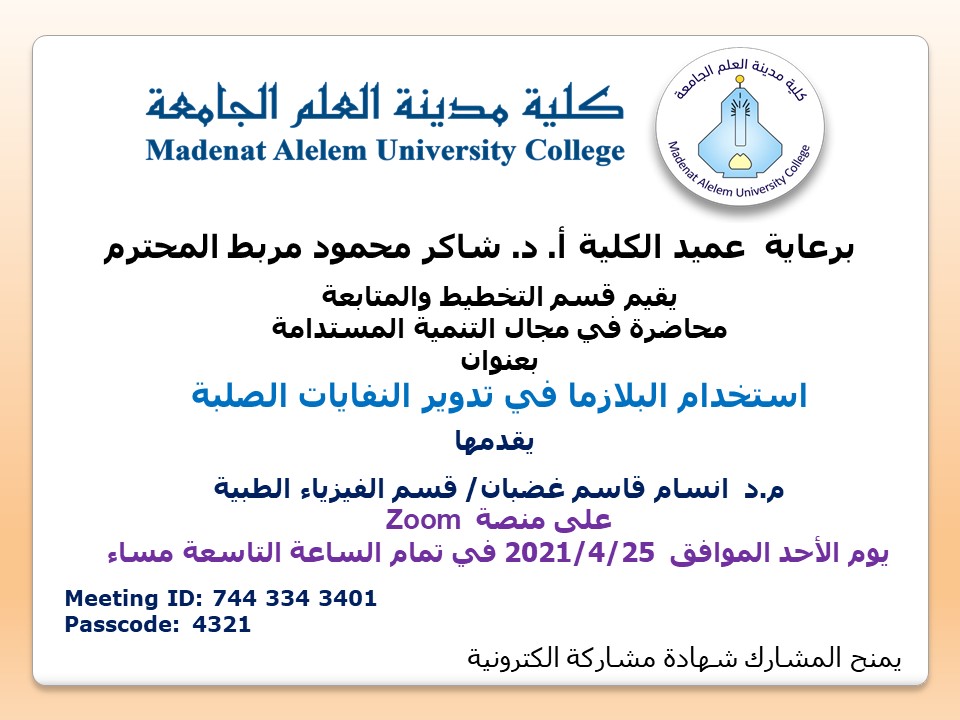 برعاية السيد عميد كلية مدينة العلم الجامعة أ. د. شاكر محمود مربط المحترم