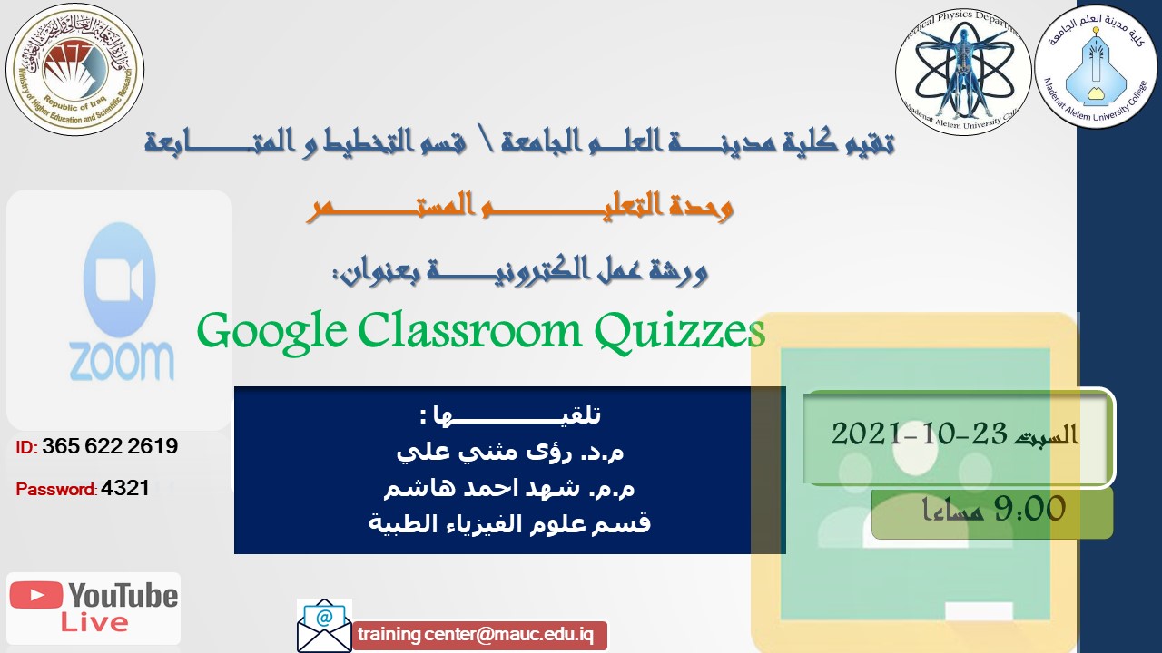 تقيم وحدة التعليم المستمر/ قسم التخطيط والمتابعة و بالتعاون مع قسم الفيزياء الطبية ورشة عمل الكترونية خاصة بالتدريسيين و المعيدين الكرام: