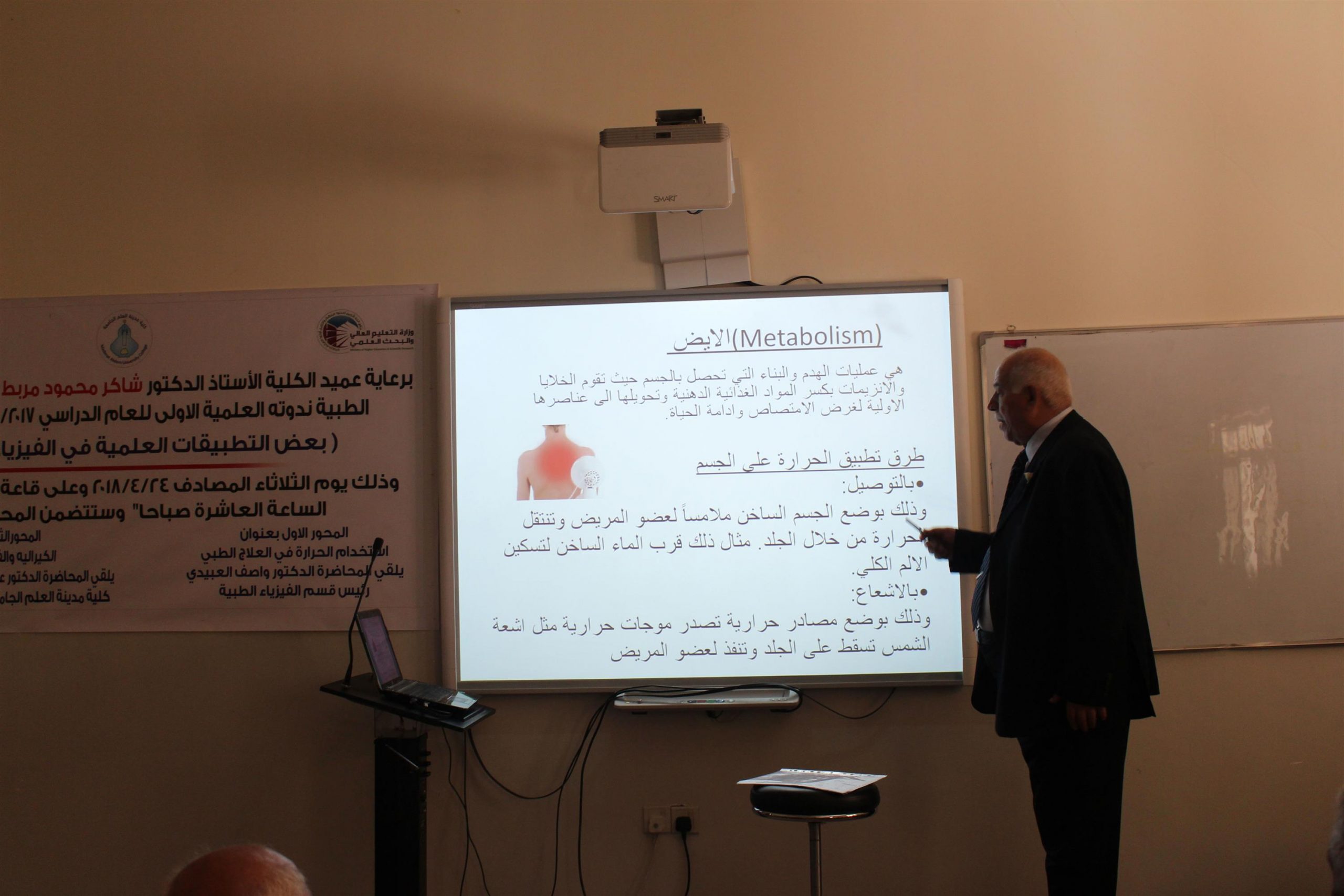 القى المحاضرة الدكتور واصف العبيدي – رئيس قسم الفيزياء الطبية